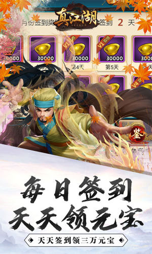 4、天天签到,送30000元宝
