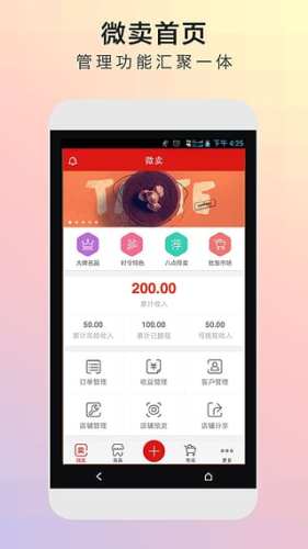 《微卖》简单的来说是一款可以赚钱的手机软件!《微卖》是以社交网络为传播媒介的商品售卖平台。任何人都可以方便的使用微卖平台,手机开店自己当老板,利用社交信息共享的优势,安全有效的售卖各种商品。
