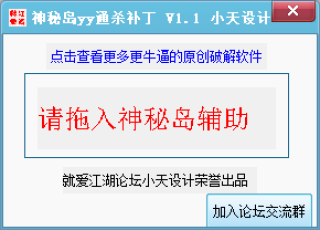 很多神秘岛辅助都需要验证YY频道后才能使用,为此有网友制作了这款神秘岛yy通杀补丁,可以帮助玩家破解yy频道验证,很多都能实现。