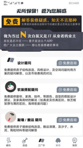 这是一款装修必备的APP。专业人士分享各装修环节的避坑干货和注意事项,让您在装修过程中更得心应手。
