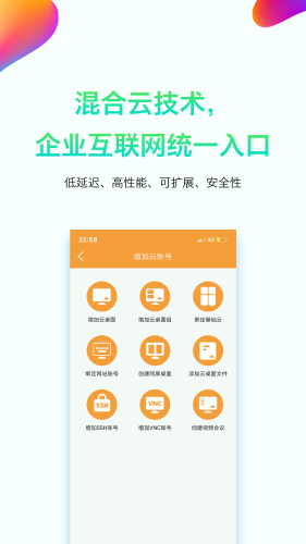 亦云小慧是广州亦云信息科技股份有限公司倾力打造的一款集多账号管理、云资源绑定、扫码访问、监控、移动办公、即时聊天(单聊、群聊)、云资源分享、移动打卡、待办事项、待办任务指派、任务完成反馈等的实用企业云上办公工具。