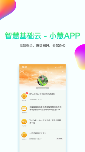 智慧基础云-小慧App,高效登录,快捷扫码,云端办公;新增多彩酷炫皮肤,用户可以切换选择喜欢皮肤;私密聊天,安全可靠,进一步为企业用户业务保驾护航;混合云技术,企业互联网统一入口,低延迟、高性能、可扩展、安全性。