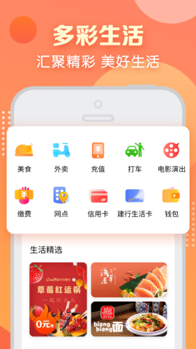 汇聚优质餐饮、品质外卖、打车出行、充值缴费等生活场景,