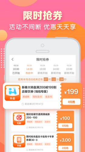 吃美食、点外卖、看电影、充话费,你想要的优惠福利都有