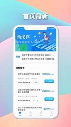 西米客app是一款好用的求职招聘软件,西米客app拥有海量的靠谱岗位,用户在西米客app可以快速投递简历,找到合适的岗位,西米客app找工作更方便。