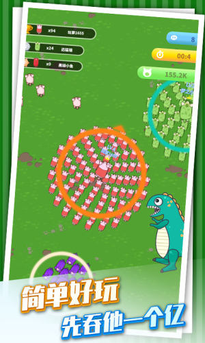你将扮演各种好玩搞怪的猪猪对抗其他阵营的猪猪,吞并他们扩大自己的阵营。也要注意恐龙的追捕噢。