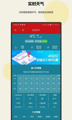 2、天气:天气动态,未来一周天气,PM2.5污染提示;