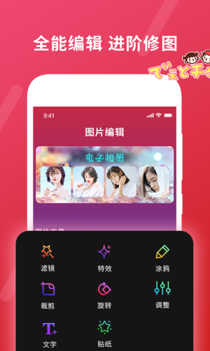 【文字贴纸】提供丰富的精美贴纸,快速给照片加入文字