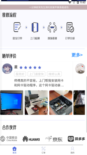 叮咚电脑维修app,方便快捷的电脑上门维修服务平台。用户可以根据电脑维修类型,快速下单,周边专业人员极速上门维修服务,30分钟现场快修,帮助解决电脑问题,需要的朋友点击下载吧。