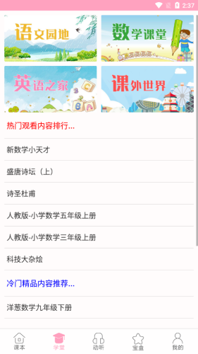 本APP是专门为学生打造的教材同步辅导,以点读学习为特点,集教学视频、趣味课堂、工具查找、交流互助于一体的纯绿色软件。