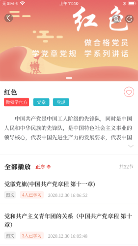 移动端共有“党史解读”" 学习文化 "" 环球视野 "等多个板块、多种栏目,内容极为丰富,聚合了大量可免费播放、阅读的新闻、音频、视频等资料。