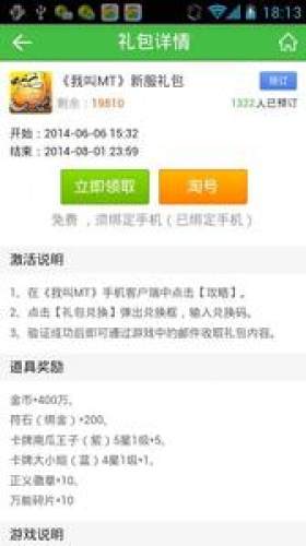 该软件基于Android系统开发,具有查找礼包、领取、淘号、预订、存储等丰富功能,让玩家在操作中得到良好体验。