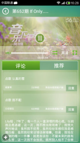 音乐下午茶是56网精心打造的你点歌,我传情的音乐节目。本应用就是它的app应用啦,下载到手机里,随时随地打开收看音乐下午茶,每天不一样节目类型带给你不一样的心情。