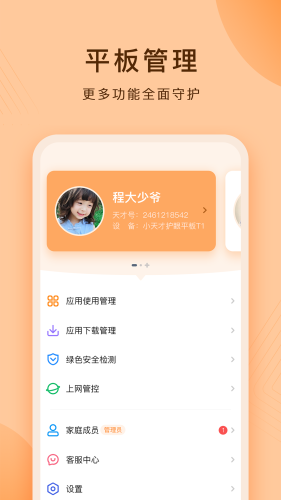 护眼平板app,小天才护眼平板的手机配套软件,关注孩子的平板使用情况,控制平板内的应用下载、网址访问、使用时长等内容,使用简单,让孩子健康使用平板。