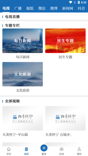要闻、视频、本地、直播、公告、乡镇、服务。