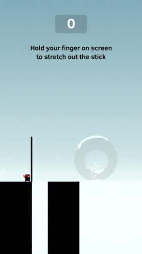游戏玩法相当简单,又相当不容易。长按屏幕,棍子就会在英雄面前竖起来,慢慢长高,你不松手棍子就一直长高。这样当然不行!