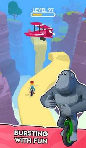 2、操控独轮车在各个障碍陷阱与跑道上进行跨越,点击屏幕保持独轮车的平衡;