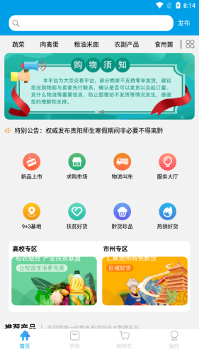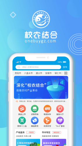 校农结合app,专注校园后勤农业的服务平台。对接农户、生产企业、合作社,直接为学校后勤提供大宗货物采购,汇聚地州特色黔货,校农结合,让校园生活更完美。