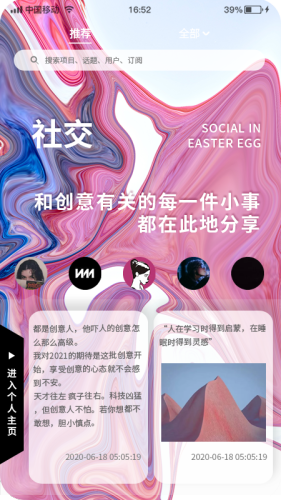 彩蛋(潮流社区)app,汇聚大量创意潮流产品的互动社区平台,每天发布最新潮流信息,涵盖游戏、摄影、影视、动漫、音乐等多个领域内容,关注潮流趋势。