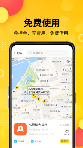 任你用是一款随时随地都可以使用的APP。我们拥有专业的技术团队,全新的大数据平台,核心的运营管理能力,加以24小时实时客服在线服务,严谨的数据安全保障,旨在与城市热门商圈的商场、商户等公共场所合作,通过提供任你用充电一体柜机和移动电源专用设备,为用户提供方便好用的免费移动电源租借服务。