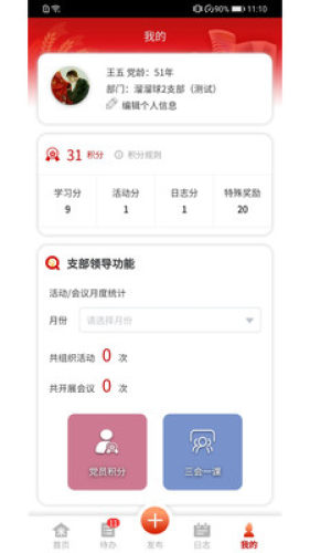 1、党务工作,日常办公,组织管理,党员管理,数据支撑,我的支部
