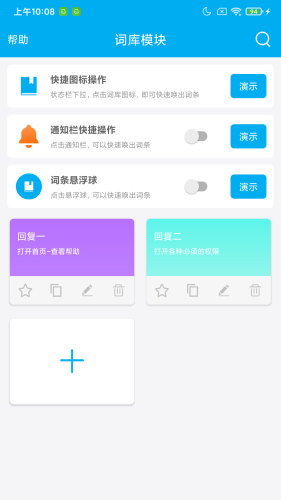 基于此需求,APP两大功能模块:词条模块,可以预设回复词条和触发关键字,
