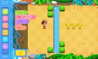 4、使用积木块编程思想来控制人物走动,拿到所有水果的益智游戏;