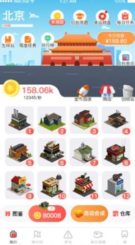 飞屋旅行是一个旅行世界模式的合成类游戏。玩家在游戏中不断的合成各种飞屋,来赚取红包奖励,更有超大机率获得分红屋,玩家邀请好友还能获得海量红包。