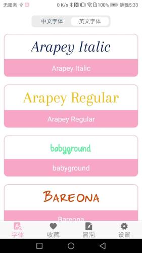 字体大全app,汇聚数百款中英字体的手机软件,免费下载使用,支持字体的下载、导出、安装等功能,图片展示字体样式,轻松挑选喜欢的字体,让手机字体更换更简单。