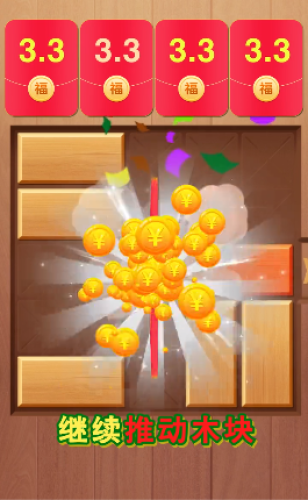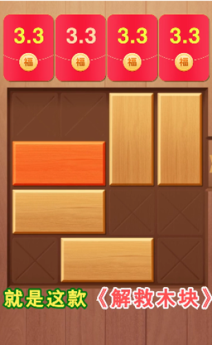 解救木块游戏是一款益智性极强的游戏,在这里想方设法,将指定的木块进行挪动,移动到指定的位置就可以了。并且每闯关一关,就会有3.3元的红包可以解锁。来推动木块,一边玩一边赚钱吧。