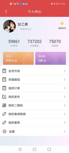 众享生活APP为用户提供同城招聘服务,同城物流服务,餐饮折扣券,同时用户可以通过走路和签到获取对应的众享晶石。
