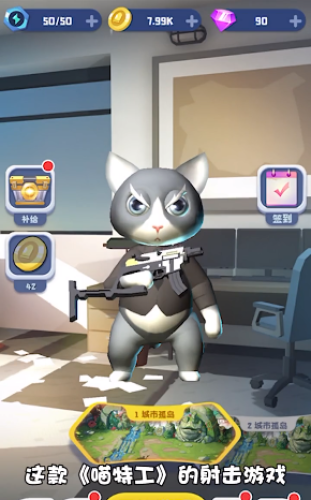 喵特工是全新的竖屏射击大作,玩起来超赞的呢。各种可爱喵咪,化身特工解锁装备,开启无限射击之旅,玩起来超酷哦。利用地形来隐藏自身,进行趣味对抗射击,竖屏玩法更是新颖,是一个不错的射击游戏。