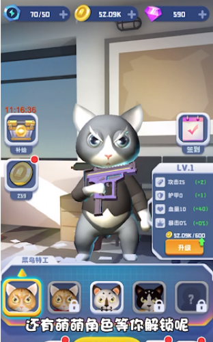 喵特工这游戏有毒,说好只玩十分钟,结果2小时都停不下来!玩家需要控制自己的猫咪,完全不同的任务,趣味的游戏玩法,新的枪支射击让玩家感受不一样的闯关乐趣,解锁更多的游戏模式,可以解锁不同的特工喵咪,自由的切换角色开始冒险。