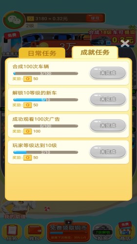 全能车神红包版真的能赚钱,也能提现,而且操作也简单,只要简单合成跑车就能赚红包,完成每天的赛车任务也能获取红包,更不用说平台的分红了,只要解锁分红车就行,随时提现超给力的。