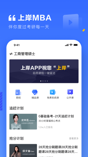 1. 上岸MBA,是一款致力于为广大学生提供考研学习服务的App产品;