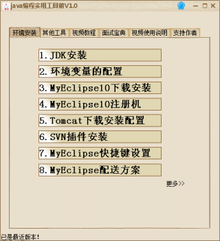 Java编程实用工具箱是Java编程开发学习必备工具箱,提供Java环境安装、Java编程视频教程以及Java面试宝典。工具完全免费使用,希望能够帮助广大Java编程开发学习者快速入门以及准备好基础工具环境。真正好用的Java开发实用工具,值得收藏!