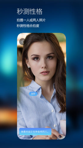 智能生命会对每一个来到核拍的用户有一个第一印象,你的会是什么呢?只通过一张人脸照片,智能生命会对你的性格进行识别。你也可以让智能生命去识别你的朋友的性格,查看你们两人的匹配度。此功能仅用于娱乐。