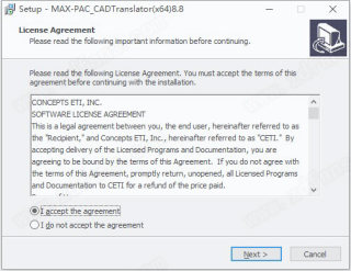 2、双击MAX-PAC_CADTranslator(x64)_8_8_6_0.exe运行安装,勾选我接受协议