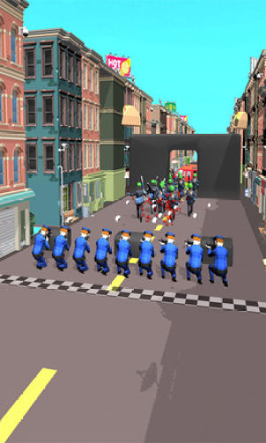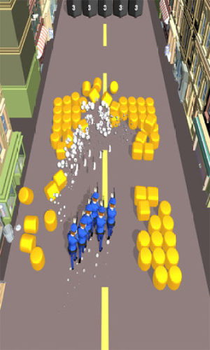 模拟经营射击游戏,游戏中玩家要带领你的警察团队去战斗,不管遇到什么阻碍,犯罪分子,汽车,油桶,你都可以使用射击的方式来解决掉它们,你击中的目标越多,获得的金币也就越多,使用金币去增加团队的人数和武器的火力,让你的警察队伍变得更加的强大。