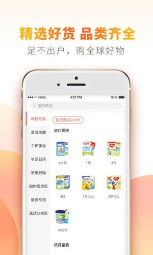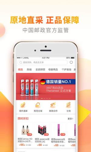涵盖海外多元化品类,包括德国奶粉,彩妆护肤,个人洗护,服饰鞋包,家居日用,美食保健,母婴用品,数码电器等;