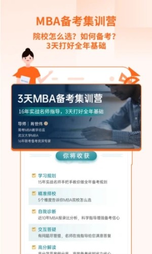 备好MBA是一款在线学习备考助手,软件拥有优质的笔试课程,独家原创配套教材等等内容,可以帮助用户更好的学习备考,欢迎前来下载使用。