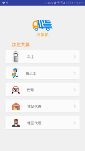 货叭叭的司机专用端,自有车辆用户或者运输企业可以通过注册并审核通过后