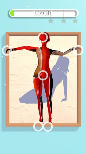 人体染色术游戏展示了一个全身,你必须根据它背后的轮廓移动每个身体部位。一旦您相应地移动身体部位,隐藏的图像就会显示出来。