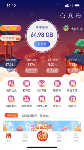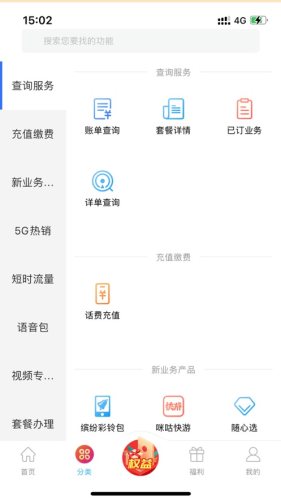 集账单查询、流量查询、话费充值、套餐办理、优惠活动、交通出行、娱乐休闲等服务于一体,便捷服务省时省心。