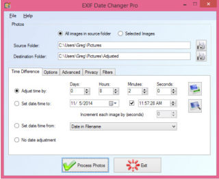 快速调整的EXIF日期/时间属性(时间)在一个文件夹或文件夹中的所有图像