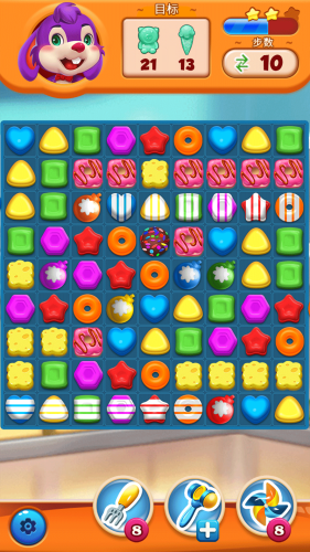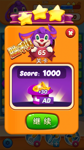 从前有一只紫色的小兔紫,不小心掉进了果的世界,要逃离这里就必须将糖果一一消除,