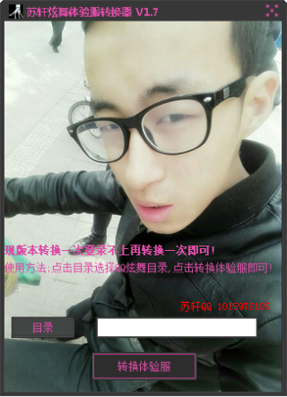 苏轩炫舞体验服转换器可以将qq炫舞普通服客户端转换成体验服,现版本转换一次登录不上再转换一次即可,使用时点击目录选择qq炫舞目录,点击转换体验服即完成。