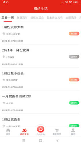 2、组织生活:了解组织举办的活动与我参与过或即将参与的活动,并可以对活动进行评论和拍照记录。