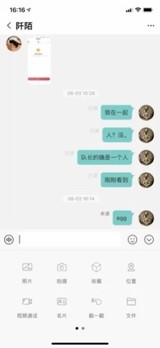 2、消息:支持长文本、个性表情、图片、附件、录音、动画、录像、共享名片、发送定位、截屏等
