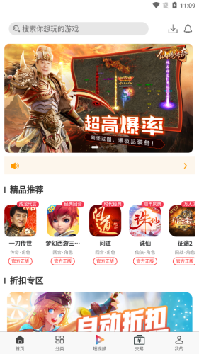 E折游app,一款优质的游戏下载交易平台。E折游拥有角色、仙侠、策略、回合等各种各种手游下载,各种游戏活动以及礼包福利实时了解,支持角色、道具在线交易,给您不一样的游戏畅快体验。
